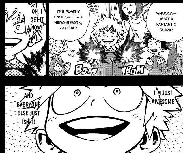 Let me explain; for some readers, or some people who watch the blog… I’m going to post a panel from a manga. A pretty character defining scene; for context, the characters in this universe are all given “quirks”, which are essentially superpowers. Some are born with abilities while others aren’t.